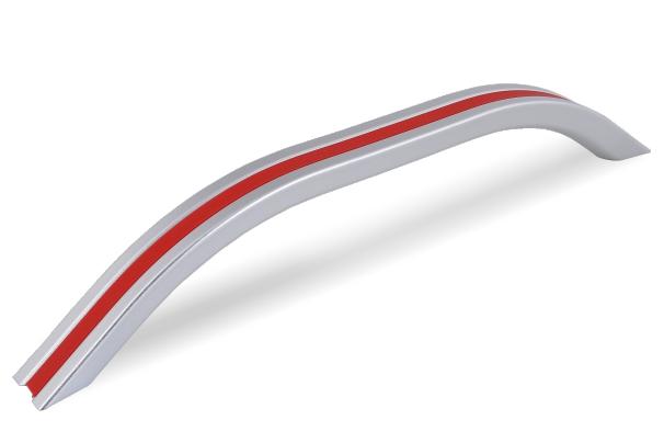 Color: tube body (aluminum anodized sand color), trim strip (red, gray)